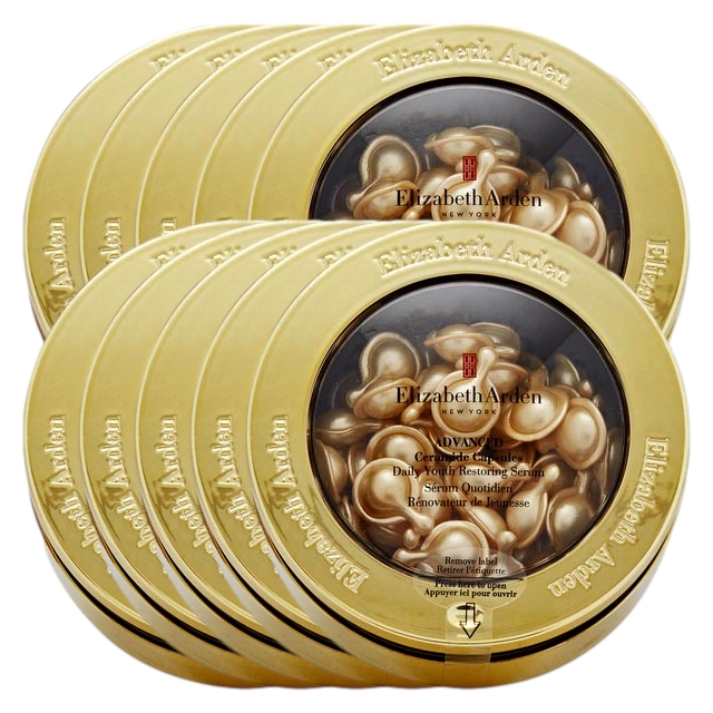 エリザベスアーデン アドバンスドセラミドカプセルデイリーユースレストリングセラム 60カプセル x 10 お得な10個セットの容量違い・カラー違い