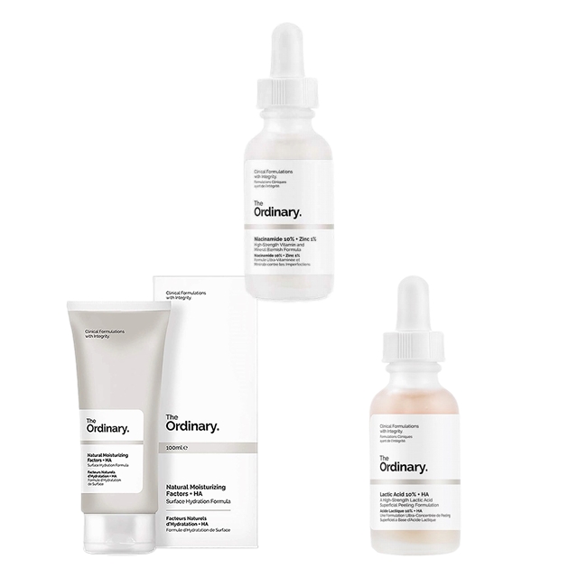 - ジ・オーディナリー ナチュラル モイスチャライジング ファクター + ヒアルロン酸 100ml と乳酸10%+ヒアルロン酸 30ml とナイアシンアミド 10% + 亜鉛 1% 60ml のセットのお悩み・効果